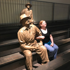 In 2002 the restoration on the bus was complete, and Rosa Parks, a Detroit native, was brought to the museum for the unveiling. At 89 years old, she boarded the bus, and once again sat in the exact same seat she once did all those years ago, which is pictured below. Man, I wish I could have been there to witness her reuniting with that bus! Also of interest during Obama’s re-election campaign, he visited the Rosa Parks bus, but said he did not feel worthy to sit in the seat she once did. He sat in the seat next to where she sat which is pictured below. We were pleased to learn visitors were allowed to enter the bus, and to sit in the seats while we were taught the history of the Rosa Parks Bus by a guide. It was an honor, privilege, and forever memorable experience for me to sit in the exact seat where Rosa Parks once did, which is pictured below. This has been hands down the most powerful and memorable moment in my trip! Lori decided to sit in the seat that President Obama did during his visit, which is also pictured below.
