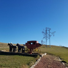 6th - Teddy Rides Again Completed in 1993, it is located 2 miles away from the previous sculpture. It is a 2 dimensional sculpture honoring our 26th President Theodore Roosevelt. In front of the sculpture is a toy stage coach constructed with wood. I took a pic of this sculpture while sitting in the back of the coach.
