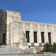 After safely making it to the front of the building, we were searched by security, and made our way to the tour guide's desk in the building's central room. This room was absolutely breathtaking! There were 21 different types of marble from all over the world, 4 full size statues depicting prominent Louisianans, and a large bronze depiction of the state seal on the floor in the center of the room. In the far left corner was scaffolding erected 4 stories high, and an artist was performing restoration work on the ceilings! Please see the pictures below.