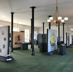 After exiting the former legislative chambers, we visited the capitol's central room. The murals depicting the state’s rich history, the beautiful cast iron balconies and railings encircling the space, and the stained glass internal rotunda made this room the most stunning in the statehouse. Please see the pictures below.