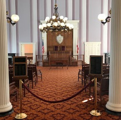While the color coded map may have seemed to be evident of where we could and could not venture, in actuality it wasn’t quite that simple. Corridors, doorways and stairwells were unexpectedly roped off with no explanation of how to get to points of interest on the other side without crossing into the dreaded “GRAY ZONE”. Instead of exploring the statehouse and learning about our potential home state of Alabama, we spend the majority of our time trying the navigate the “White Zone”. Step one foot out of the “White Zone”, and a state trooper was there to put you back into place. Compounding our frustration, the Governor's Suite, the Original Governor's Suite, and the Original Secretary of State's Suite described in great detail on our brochure were located in the “GRAY ZONE” Why even bother describing fascinating historic rooms in your brochure, if they are not accessible to the public? The Alabama Statehouse was the least friendly and least welcoming capitol we have visited on our cross country trip.
