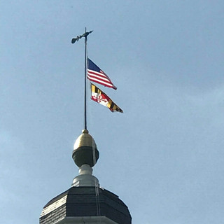 Perched high above the brick building is another unique feature of the Maryland Capitol; the largest wooden rotunda in North America! Albeit hard to fathom, not a single nail was used during the construction of the dome! The rotunda is simply held together by wooden pegs reinforced by iron straps! Perched on top of the dome is a lightening rod personally built by our Founding Father Ben Franklin! Just to recap, we have a large wood dome built without nails, topped with a lighting rod from America’s Colonial Period, which has stood exposed to the elements for over 225 years! Here is the real kicker! The dome did not require restoration until 1996! Absolutely astonishing! Once upon a time, when America built something; we built it to last! All one has to do is look at the rotunda of the Maryland Statehouse as proof! I cannot wait to see what additional surprises the capitol has in store! Please see the pictures below!