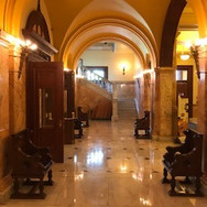 Bob paired Lori and I up with an already scheduled tour of grade schoolers from a parochial school in South Jersey who were well dressed, inquisitive, genuinely interested and well behaved. First, we were led into the House, which was beautiful but otherwise unremarkable. Bob proceeded to give a very accurate and interesting presentation about how the House operates. Upon completion of Bob’s speech, he asked the group if there were any questions. A young boy raised his hand, and asked Bob, “Why is the clock on the wall showing the wrong time?” The entire group's eyes turned away from Bob, and towards the clock displayed above the chamber as a soft muffled chuckle broke out across the room. Sure enough, the time displayed was 7:00 when it was in fact 11:00! Bob stated the battery likely needed to be changed, and praised the young boy for his “astute attention to detail; a quality which will indeed serve you well throughout your life”. Please see the pictures below of the New Jersey House chamber.